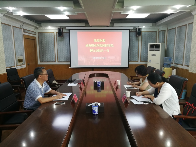 8月10日上午,威海职业学院国际学院柳文杰经理一行2人来访公司,调研交流公司职工招生及教育管理工作。何斌经理热情接待了来访客人。