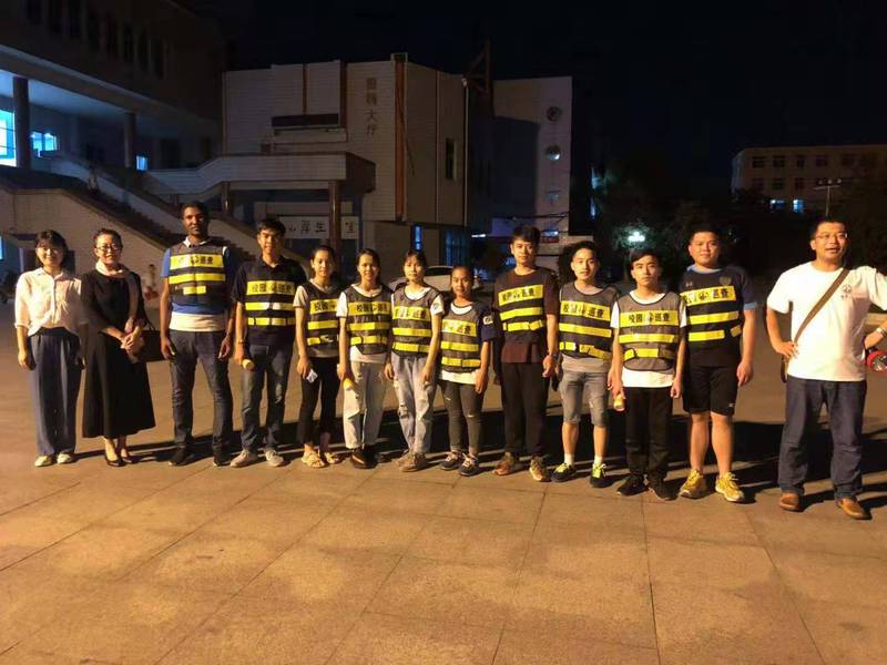9月12日晚,一支列队整齐、肤色各异的校园巡查队伍吸引了众多员工的目光,他们身着巡查服,精神饱满地行走在校园主干道上。这支刚刚“上岗”的校园文明巡查队是由公司老挝、柬埔寨、科摩罗、哈萨克斯坦等不同国家的职工组成的。